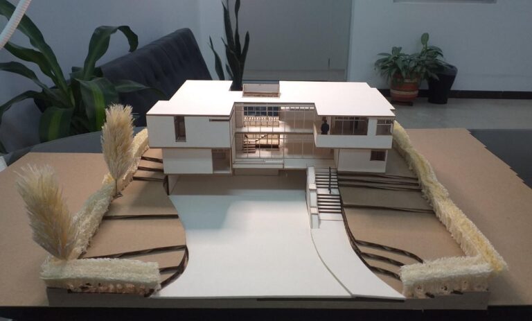 En el segundo nivel se distribuyen tres habitaciones principales, cada una con baño, vestier y balcón privado, manteniendo una proporción similar por solicitud del cliente, quien buscaba equilibrio y uniformidad espacial.